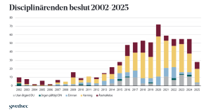 Swedsecs disciplinnämnd har hittills meddelat 25 beslut under 2025; åtta återkallelser, 16 varningar och ett beslut om erinran.